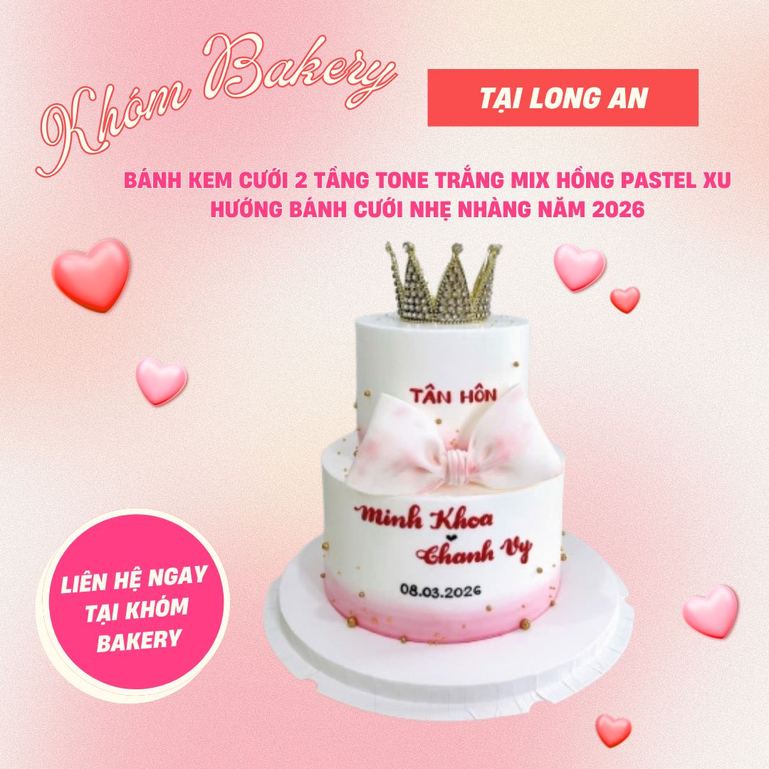 Với sự chăm chút trong từng chi tiết, KHÓM Bakery mong muốn mang đến cho khách hàng những chiếc bánh cưới 2 tầng đẹp vừa sang trọng vừa ý nghĩa, góp phần làm cho ngày trọng đại của cô dâu chú rể trở nên trọn vẹn và đáng nhớ.