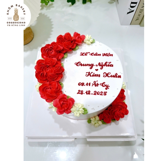 Bánh kem cưới hỏi làm theo yêu cầu tone trắng đỏ