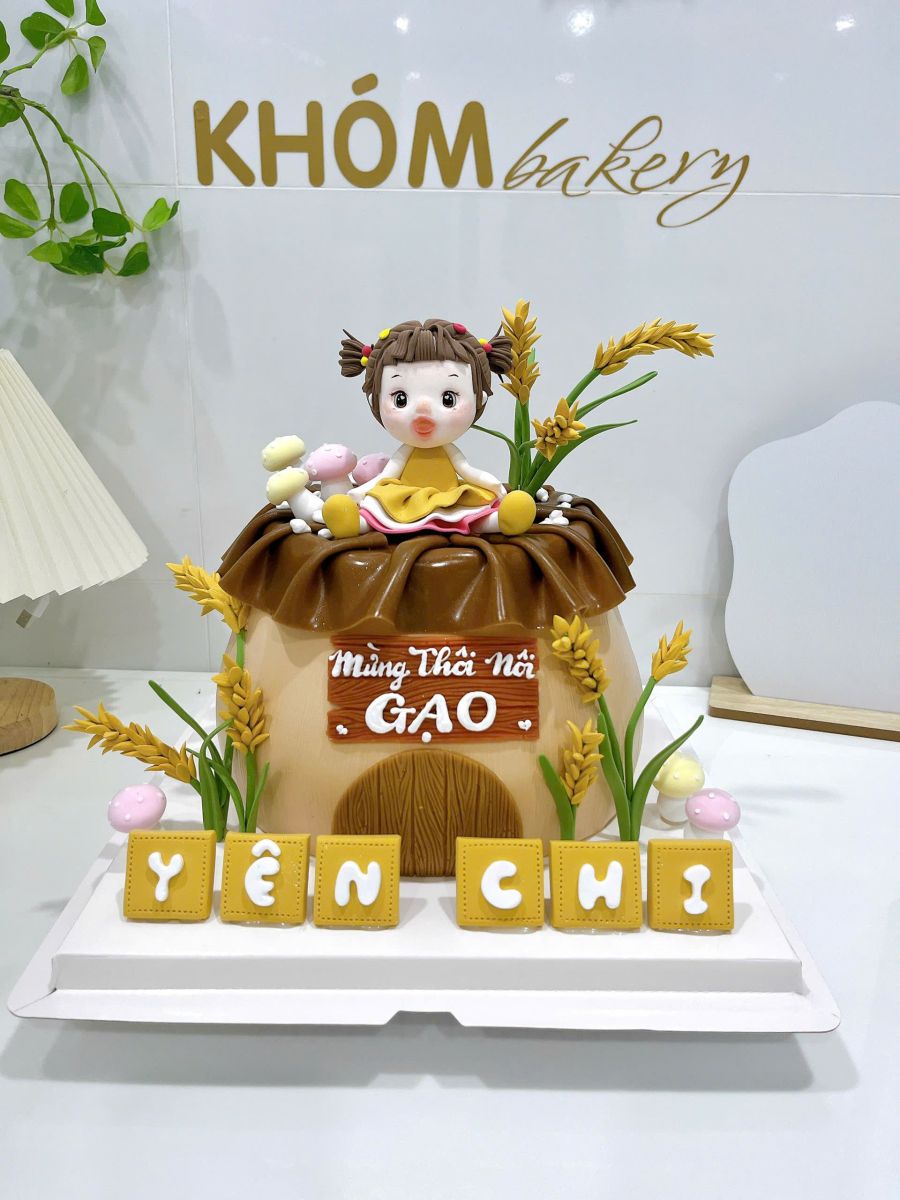 Mỗi chiếc bánh thôi nôi túi gạo tại KHÓM Bakery đều được làm thủ công với sự chăm chút từng chi tiết. Từng hạt gạo được tạo hình tỉ mỉ, lớp kem mềm mịn phủ đều, mang đến tổng thể sang trọng, tinh tế và gần gũi.