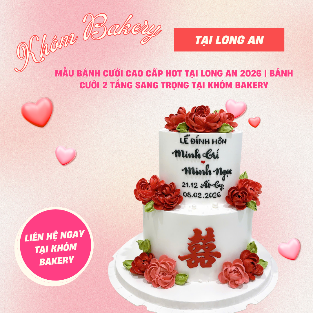 Nếu bạn đang tìm kiếm bánh cưới 2 tầng cao cấp, đặc biệt là dòng bánh cưới 2 tầng trắng kết hợp tone đỏ hoặc bánh cưới 2 tầng cao cấp kết hợp hoa tươi hot 2026 Long An, hãy liên hệ KHÓM Bakery để được tư vấn chi tiết.