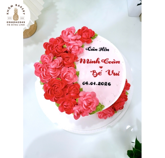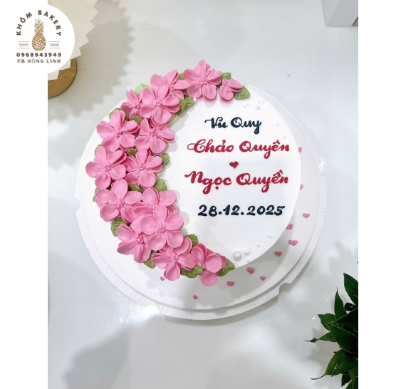 Bên cạnh bánh cưới chính thức, bánh kem mừng lễ tân hôn là mẫu bánh dùng để chúc phúc và tôn vinh cột mốc quan trọng của đời sống hôn nhân. Với thiết kế cân đối, trang nhã và dễ phối không gian trang trí, đây là lựa chọn phù hợp cho tiệc tân hôn ấm cúng.
