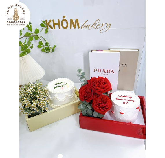 KHÓM Bakery sẵn sàng tư vấn chi tiết từng mẫu sét bánh và hoa theo mong muốn của khách, bao gồm kích cỡ, màu sắc, lời chúc và thời gian giao nhận.