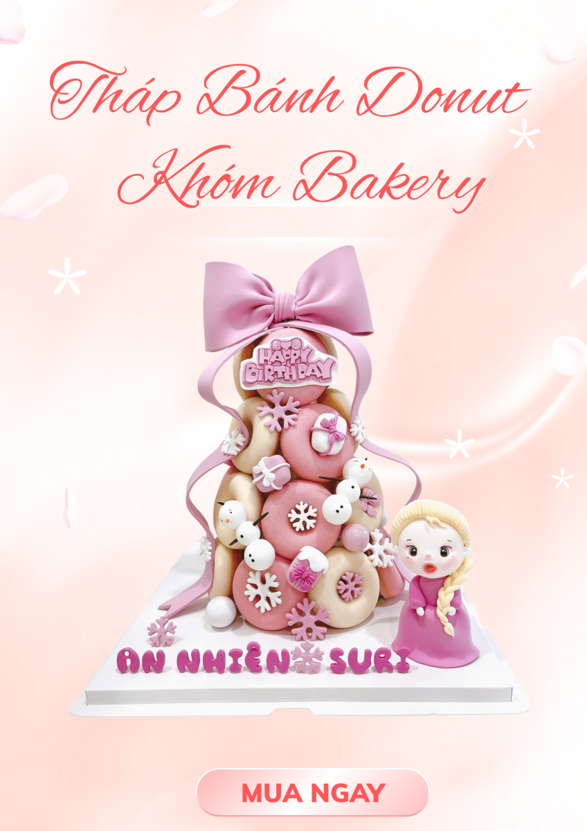 Nếu bạn đang tìm mẫu bánh sinh nhật hot 2025 cho bé, đừng bỏ qua dòng tháp bánh donut tại KHÓM Bakery.